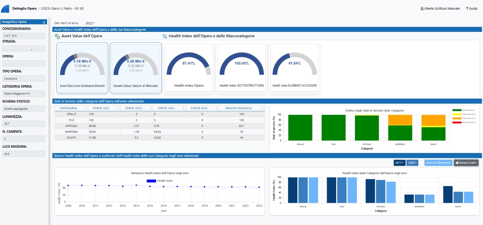 • disporre del database di dati di ispezione attuali e storici di tutte le opere delle concessionarie accessibile, facilmente aggiornabile e impostata per registrare anche i dati sugli interventi di manutenzione eseguiti (gestione informativa) e da eseguire.
