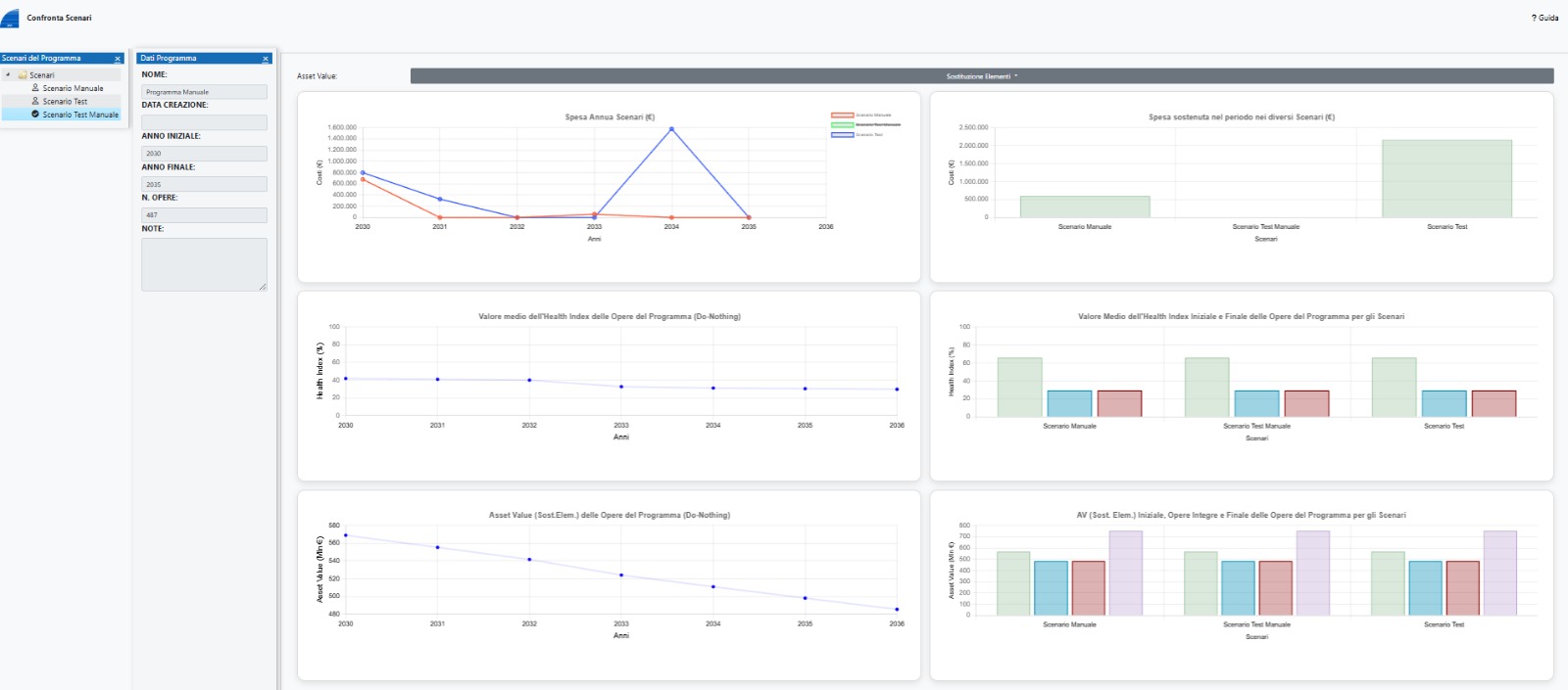 • fornire l’andamento degli indici prestazionali, la loro evoluzione e le corrispondenti valutazioni economiche, impostando differenti scenari e programmi di manutenzione; tale andamento viene rappresentato anche con opportune visualizzazioni sui modelli BIM.