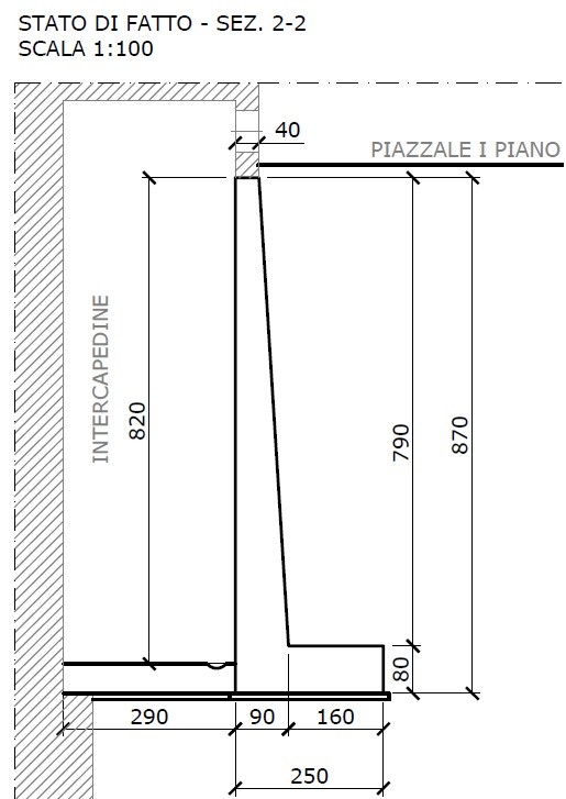 L’Analisi statica e simica sulla struttura esistente ha richiesto un attento esame dello stato di fatto e delle criticità legate a vetustà e a stabilità, per mutamenti dovuti alla presenza di acque nel terreno spingente dietro al muro.