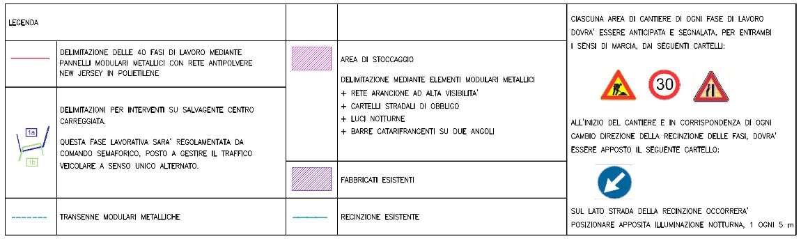 Il P.S.C. è sviluppato tenendo conto delle interferenze che si determinano durante l’esecuzione dei lavori, prevedendo quindi la suddivisione in aree di cantiere e di stoccaggio dei materiali, mobili per renderle compatibili con la viabilità e i percorsi pedonali.
