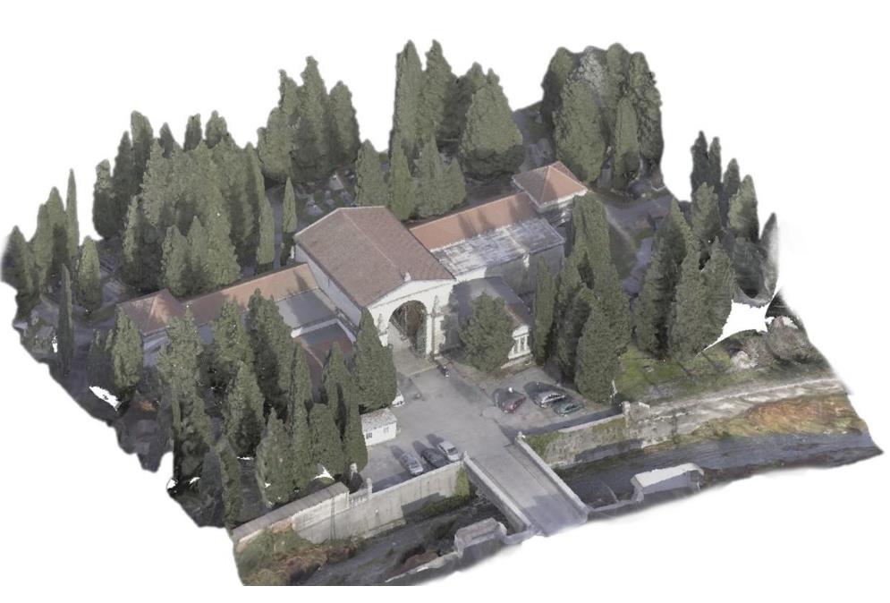 Il rilievo è stato eseguito tramite drone, con acquisizione di una nuvola di punti sulla quale è stato elaborato il modello BIM dello stato di fatto, in LOD C. A partire da tale modello sono stati progettati gli interventi in LOD E e predisposti gli elaborati grafici progettuali.