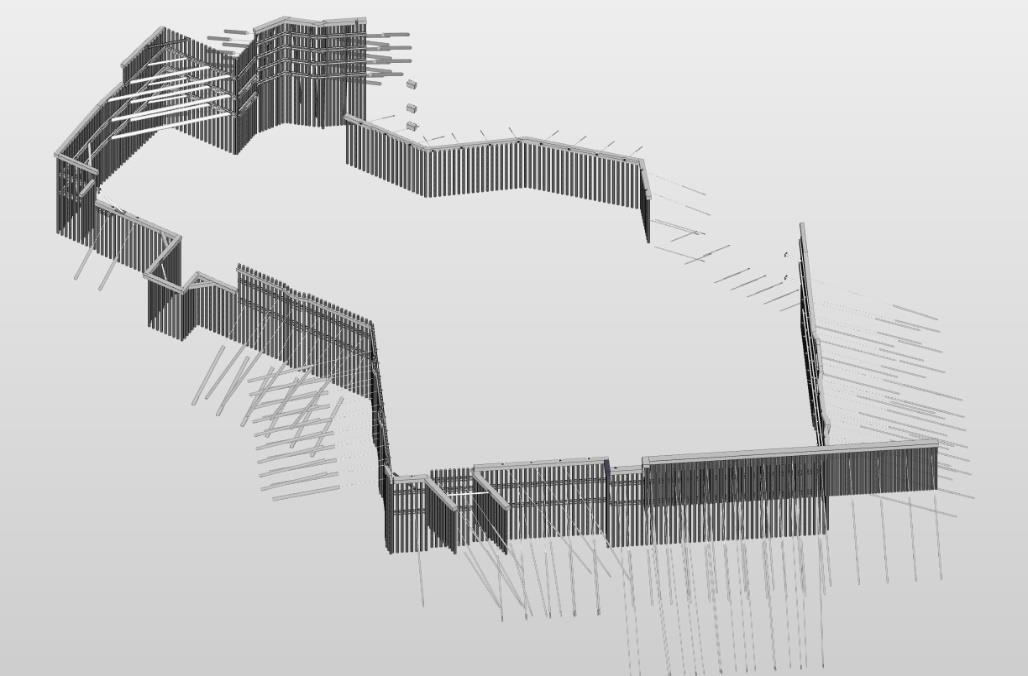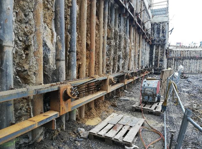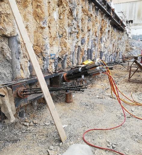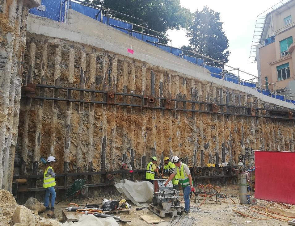 Le opere di sostegno sono composte da paratie di micropali, dotate di diversi ordini di tiranti e puntoni in acciaio.