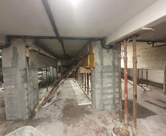 L’intervento consiste nel consolidamento statico e nel miglioramento sismico dell’edificio (quest’ultimo senza comportare il superamento della classe di rischio), attraverso opere di rinforzo degli elementi strutturali in calcestruzzo armato – pilastri, travi, solaio dei locali commerciali, balconi, pensiline e cordoli perimetrali – con particolare attenzione alla sicurezza complessiva. Viene inoltre eseguito un intervento di alleggerimento e messa in sicurezza antiribaltamento delle pareti perimetrali. Tutte le lavorazioni sono state eseguite mentre l’edificio era regolarmente abitato.